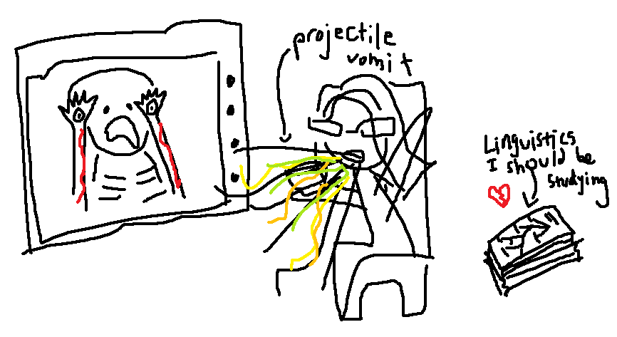 I don't know why it is, but finals always make me feel completely useless instead of stressed out. It's not even the classes I'm taking, because I felt the same way at the end of the summer, and I really should have been stressed out then. I think I'm going to eat some soup and watch Pan's Labyrinth (although my gut feeling is that this is going to be a bad combination possibly ending in vomit; I haven't seen it before) before I go back to filling in the holes in my lecture notes where I fell asleep.[EDIT: I have very few words for this movie, as in I haven't found anything at all to dislike yet, least of all Ofelia's and Mercedes' costumes. I also have very few words on my linguistics study guide. Damn. /]