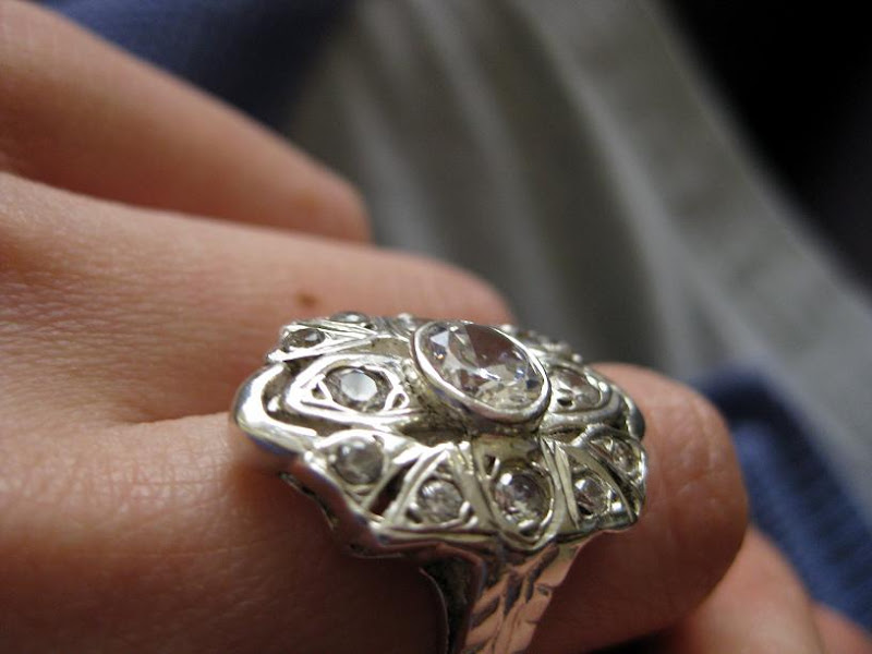 Cardigan: mother's. Shirt: Target. Skirt: secondhand. Tights: gift from my brother. Shoes: Miz Mooz. Rings: Forever21, Rapunzelsgold on etsy.