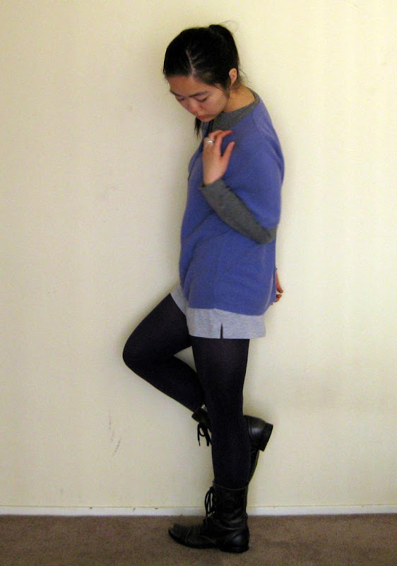 Shirt: Target. Dress: Target. Necklace: Urban Outfitters, gift. Leggings: Wet Seal, secondhand, gift. Socks: no idea. Boots: Hunter. |