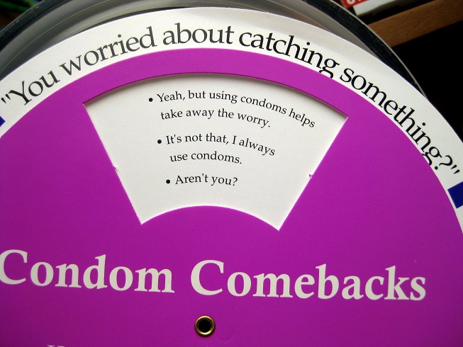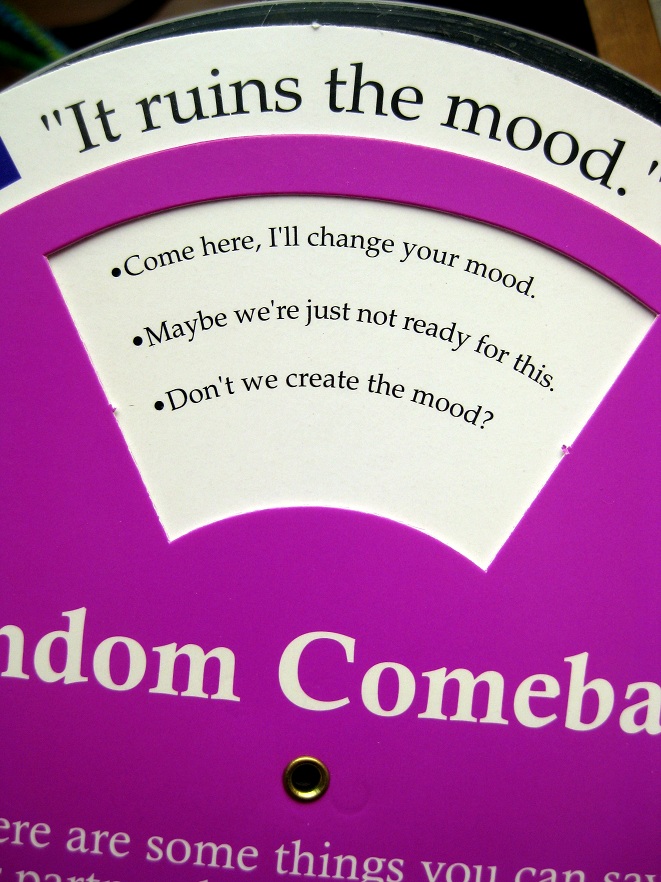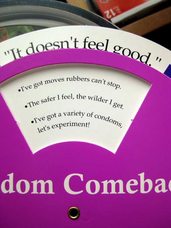 Sorry, I know I'm totally making fun of this, but I do wish that requesting condom use was a non-issue. It's just that these make me giggle like a Catholic schoolkid in 7th grade sex ed.
