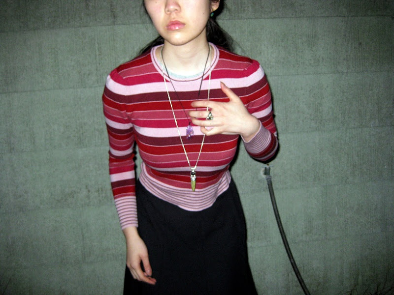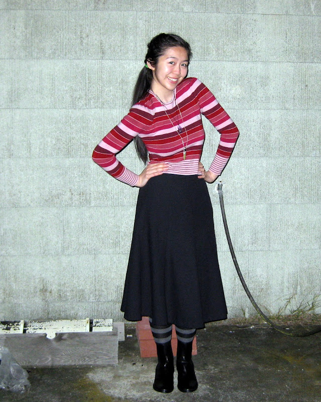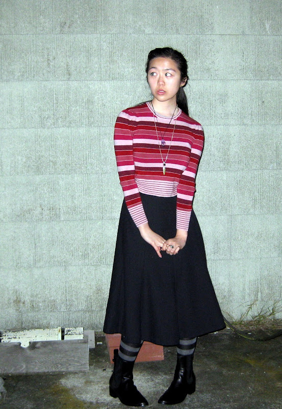 Sweater: ellemenno. Skirt: secondhand, cousin's. Socks: Target. Chelsea boots: Cole Haan. Necklaces: mother's. Ring: estate sale.